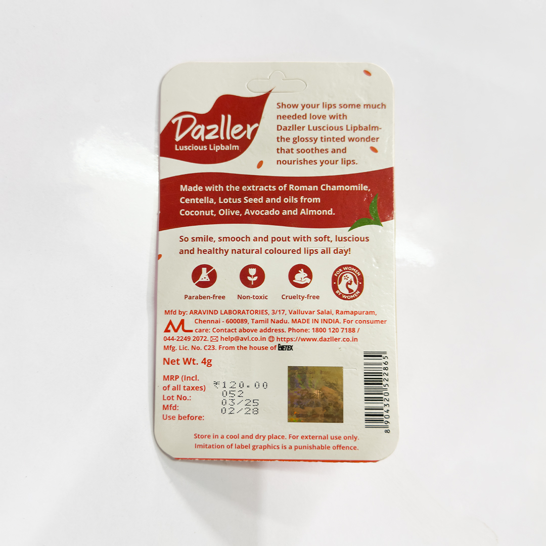 Dazller Luscious Lipbalm – Berry. No Lip Discolouration, Vegan & Cruelty-Free