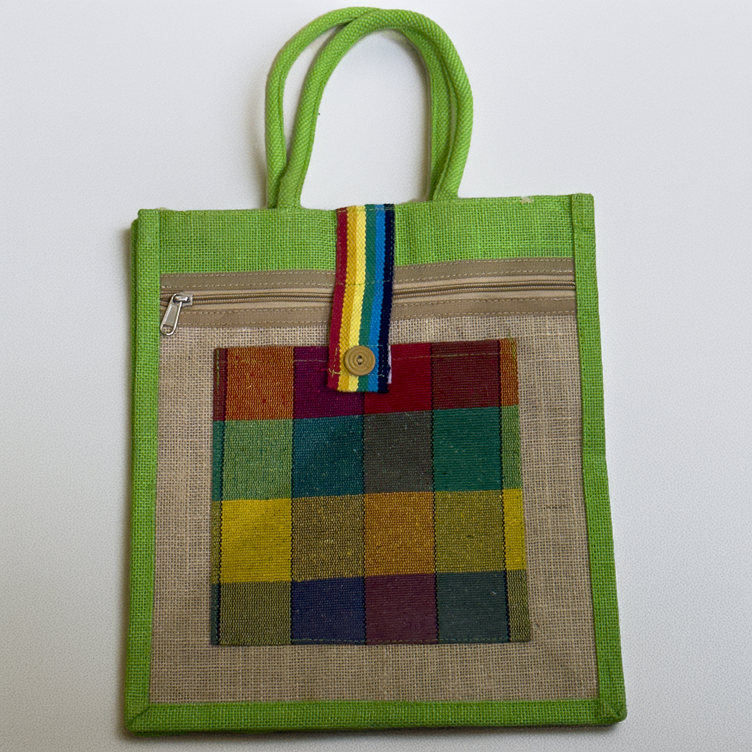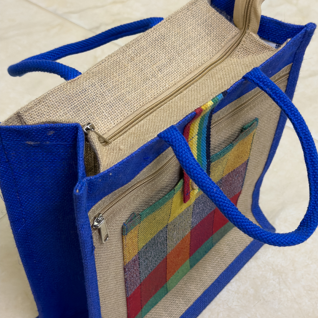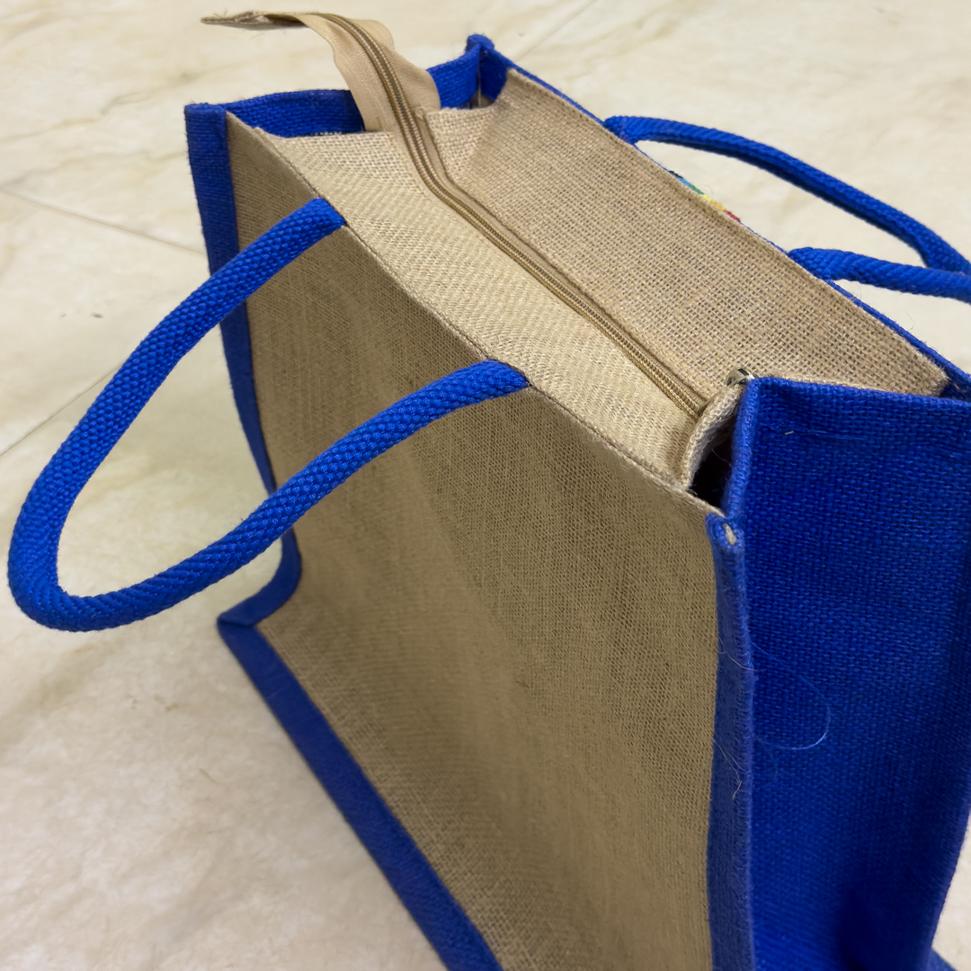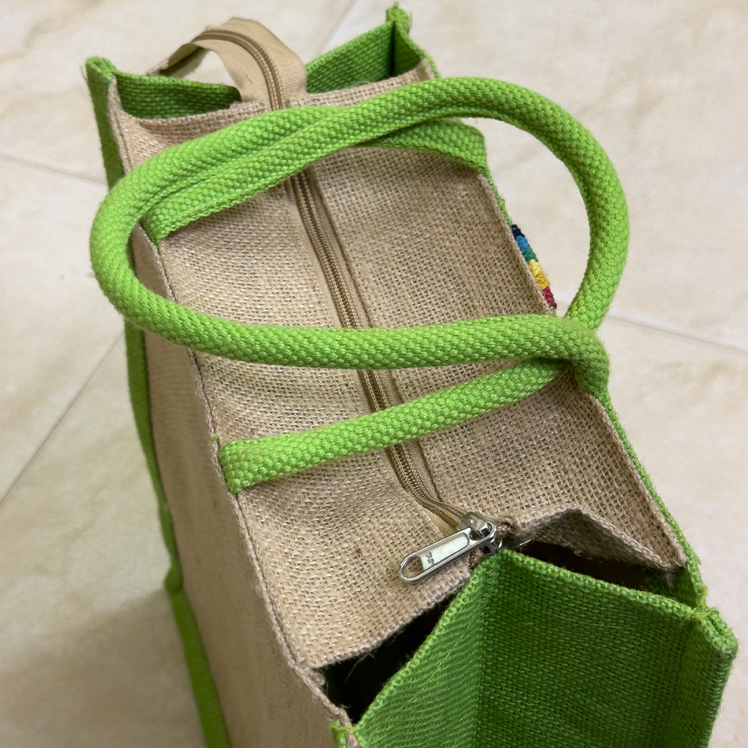 A jute made bag with inner plastic coated makes to feel water proof .It has a double zip. which helps to carry more goods and perfect suitable for your daily shopping activities.